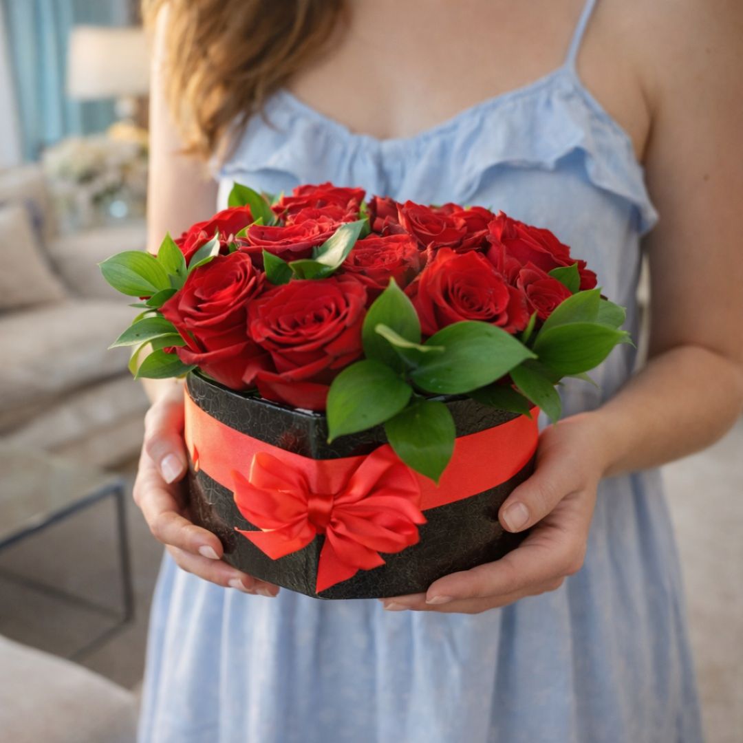 Red Velvet Love Box features rich red roses carefully arranged in an elegant black box finished with a satin red ribbon. Its compact and sophisticated design makes this arrangement a timeless gift, perfect for conveying passion, commitment, and deep emotions.